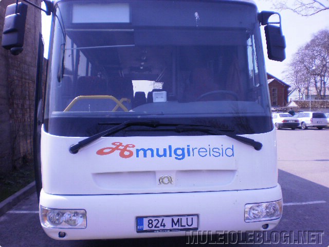 Jättes eelneva Ladina-Ameerikaliku seebiopperi teema, siis vahepäil on õues ilm läinud külmemaks ja eile sadas isegi lörtsi hommikupoole – see meenutab talve, ja vihmasadu, mis kaks viimast päeva kestnud on, meenutab sügist, eelmise nädala kolmapäev (27.04.2011), kui väljas oli kindlasti rohkem kui 100C sooja, paistis päike eredamalt ja palavamalt kui südasuvel, meenutades tunduvalt rohkem sellist suve, mida leidub ainult kaugetes paikades, näiteks vist Aasias, kus soojakraadideks kohati lausa 45…Muidugi kena ringi liikuda, jalas teksad ja seljas T-särk ning tagi… kuid sitaks palav. Ent hoolimata suurest palavusest sain Rando (juba) (siin blogis) kuulsaks saanud digikaga tehtud mõned fotod Saaremaal Uue tänava parklas seisnud Mulgi Reisid (MR) reisubussist, mis olevat tulnud Hiiumaalt. Minule kui kunagise Mulgi Reisid püsikliendile näis imelik näha bussiettevõtte bussi Saaremaal, mistõttu otsustasin vändata bussist mõned kaadrid, et jäädvustada sellist “tippsündmust”, mis oleks olnud patt jäädvustamata jätta. Mulgi Reiside bussid on minu jaoks olnud enamasti alati mugavad, kui ehk mõned korrad välja jätta, nii tundus olevat ka see buss, kuigi ma seda ei katsetanud. Isegi ei mõelnud tol korral sellele. Samuti on just MR bussid olnud, vähemalt siis, kui sellise kujuga inimeste vedajat nelja rattaga välja ilmusid, sellise omapärase kujuga, kus esmalt peaks reisija väljas olles alati märkama masina esiosa, ja alles siis, tõenäoliselt, ülejäänud enam-jaolt valget värvi liinitransporterit. Mis siis ikka, eelmise nädala kolmapäeval bussi kohates said jäädvustatud Rando digika mälukaardile just sellised pildid: