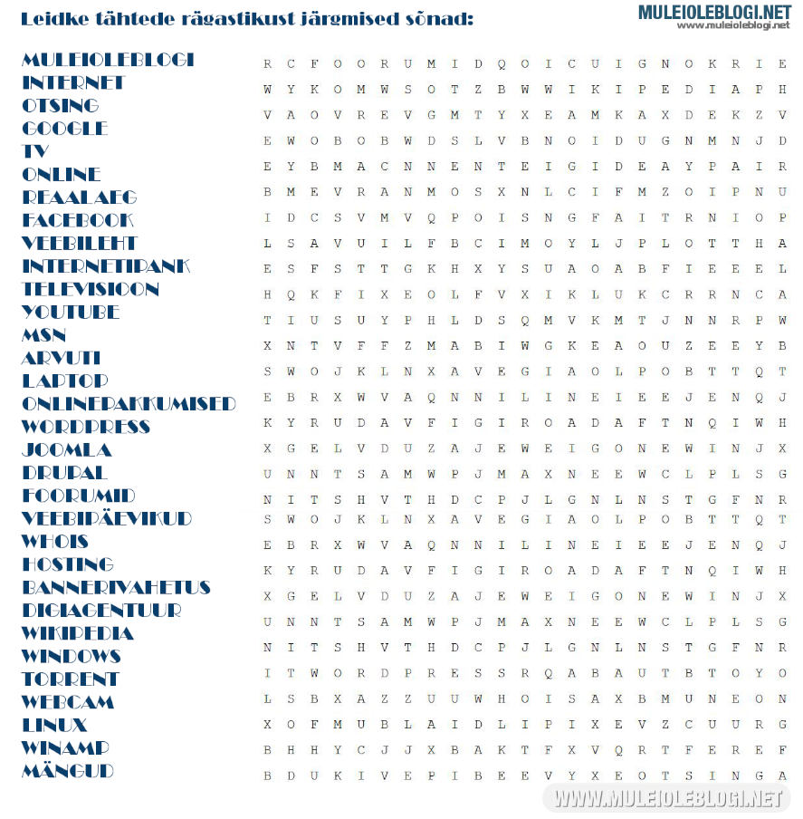 Kõige esimeses rägastikuristsõnas tuleb tähtederägastikust leida üles kõik sõnad, mis vähemal või suuremal määral on seotud internetiga ning üksikul korral muude valdkondadega.
