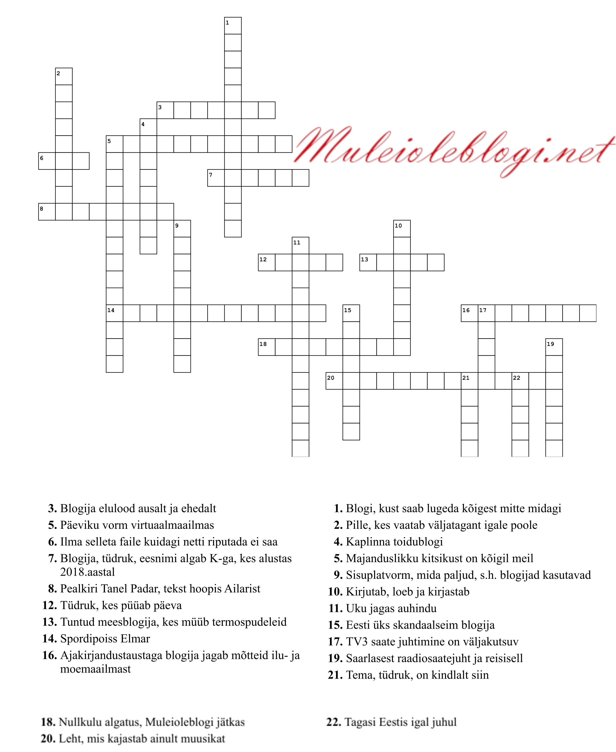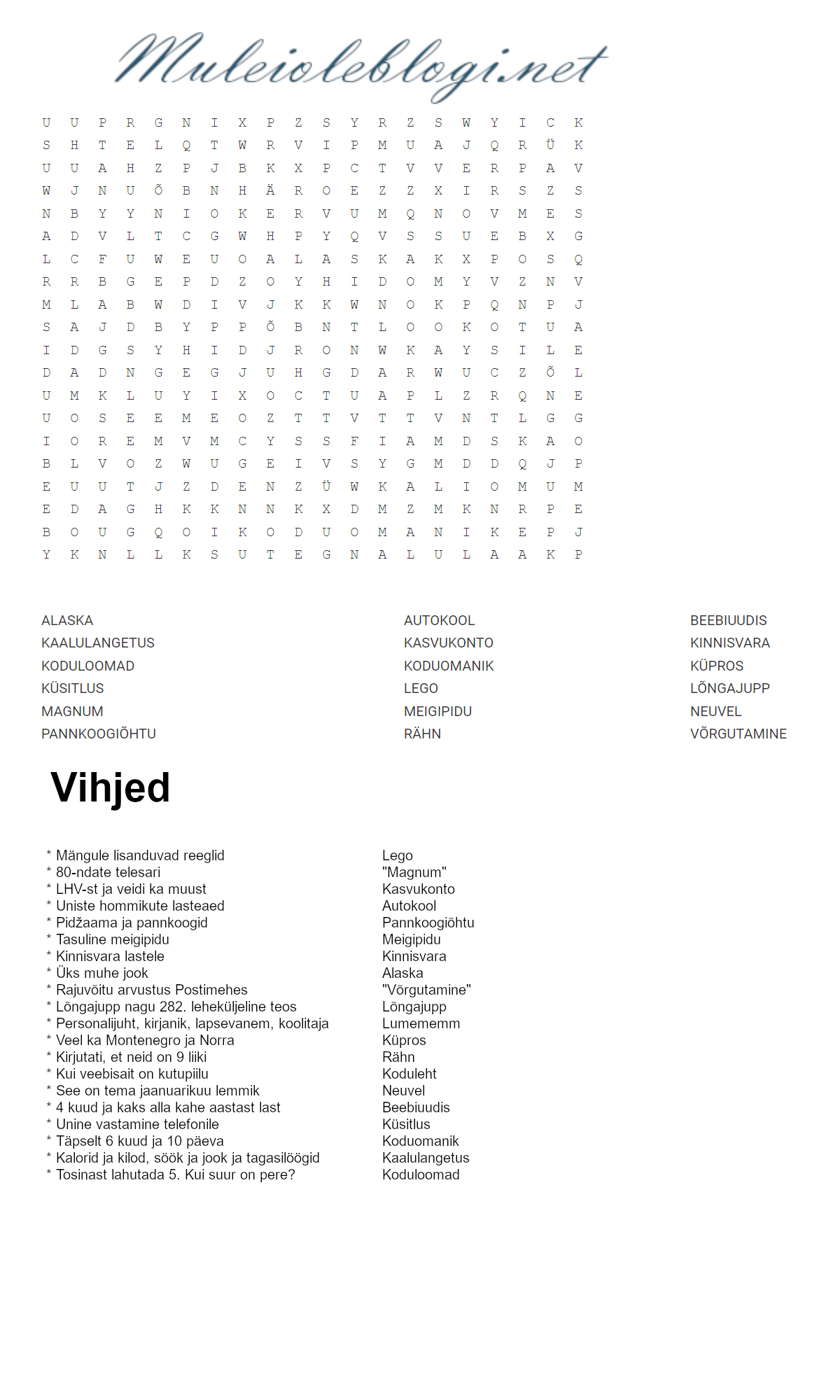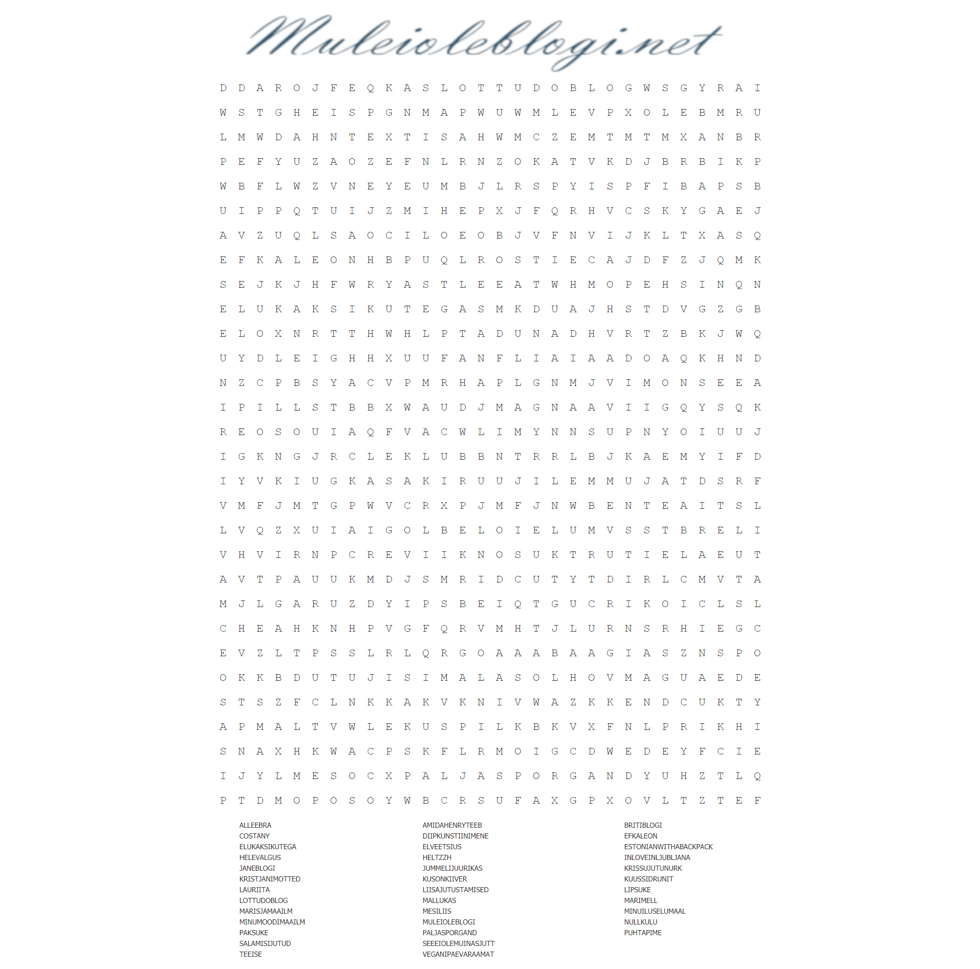 Teisest sõnaderägastikust tuleb leida üles kõik väljatoodud Eesti blogijate nimed.