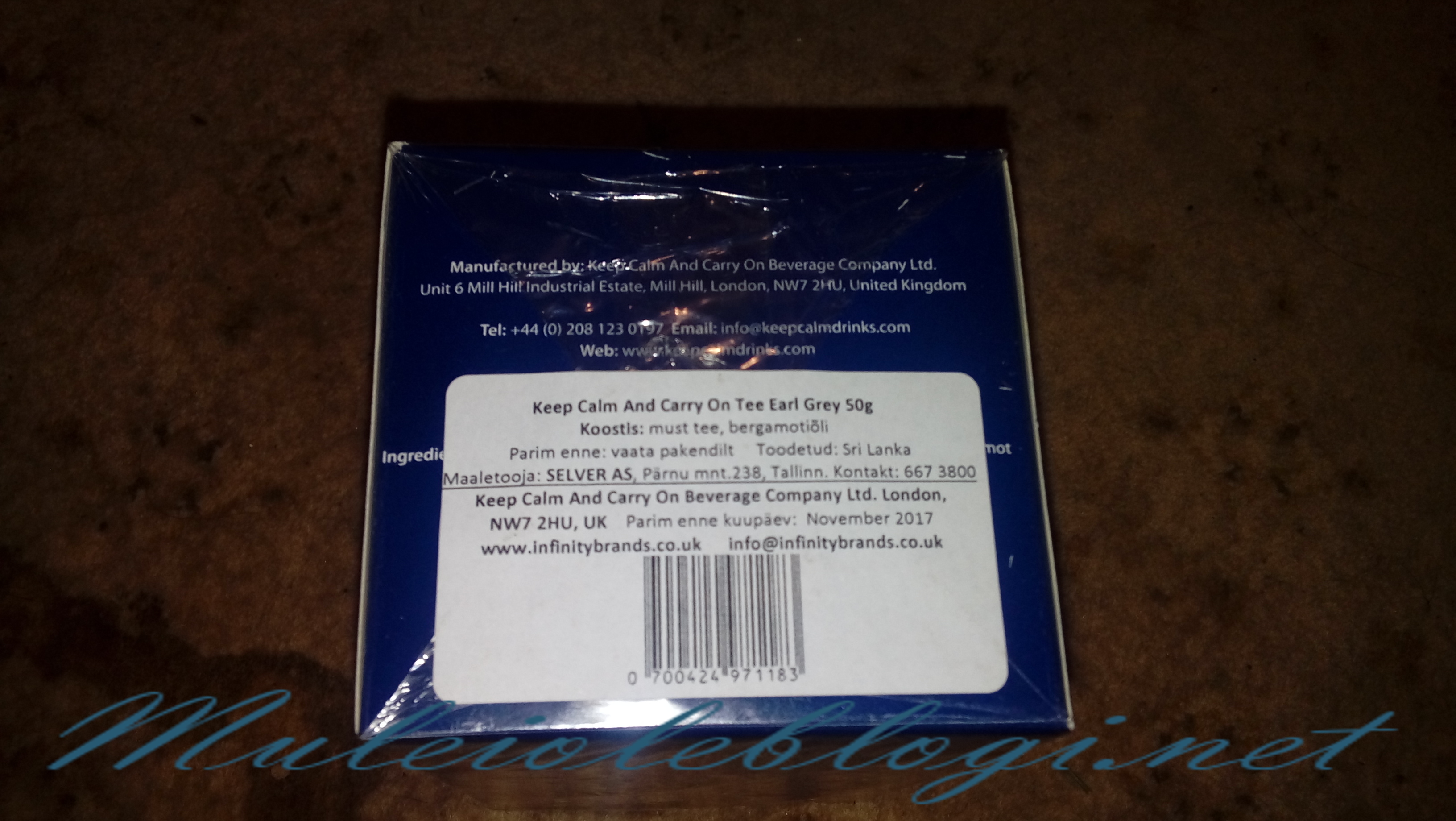 Siis leidsin pakist inglismaal Londonis Mill Hillis Keep Calm And Carry On kompaniis valmistatud tee. Ilmselt on pakitegija lugenud vähemalt üht postitust, kus olen maininud, et mina ega meie peres kohvi ei jooda. Vaid oleme teehoolikud.