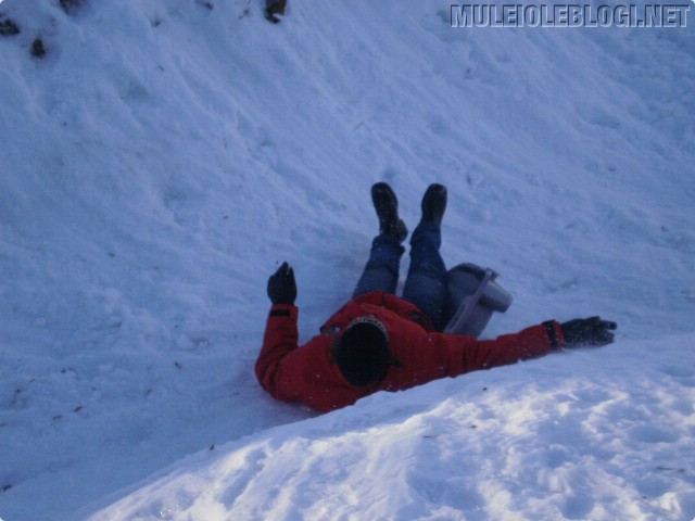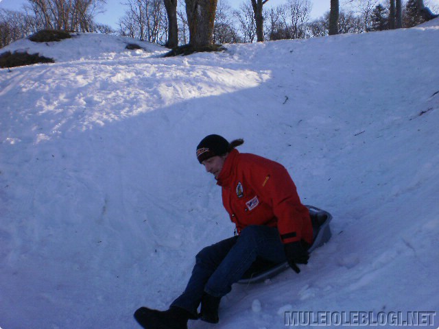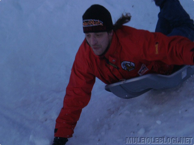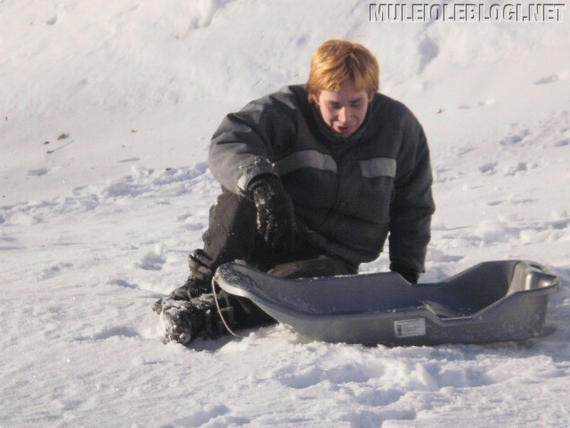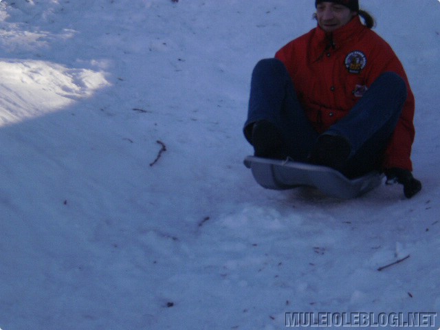 Meil oli lõbus. Isegi see oli lõbus, et poole mäe peal oli pisikene, suhteliselt imetillukene hüpe, mis alati kelgu hüppama pani ja see, kes parajasti kelgu peal oli, sai veidi haiget. Nüüd, mitu päeva hiljem, täna ei ole me enam fotograafid ega tohmanid, vaid kaks vigast – üks lombakas ja teine vigane seljapiirkonnast, kuid mitte päris seljast, vaid selle lähedalt ![]()