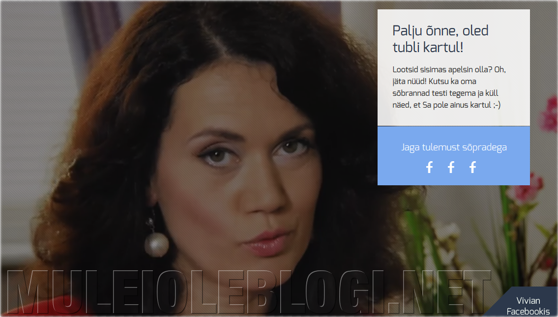 Võib-olla vale mulje, kes sellele küll nii täpselt vastata oskaks (ehk Vivian?), ent mina olen nii aru saanud, et apelsin on selline veidi karm natuur, aga aus, otsekohene. Ütleb, mida mõtleb ja teeb, mida vaja, et kaitsta ennast ja kõiki teisi apelsine meesapelsinide (või miks mitte ka naisapelsinide?) eest.Kuigi jah kui palju sellest testis tõtt ja väära on, kui palju või kui vähe tuleks seda elu elades arvestada või selle järgi elada? Noh, jätame selle igaühe enda otsustada. Mina seda igatahes teha ei kavatse. Minu elu läheb ikka nii edasi, nagu ta on siiamaani lükates või tõugates läinud, vahepeal kenasti, siis jälle allamäge, üle kivide ja kändude ja kui vaja, siis ka läbi tule ja vee. Nagu Vivian. Mõlemad teame, mida elult tahame ja soovime, kuidas seda saavutada või kas see üldse võimalik on, seda ei tea me vist kumbki