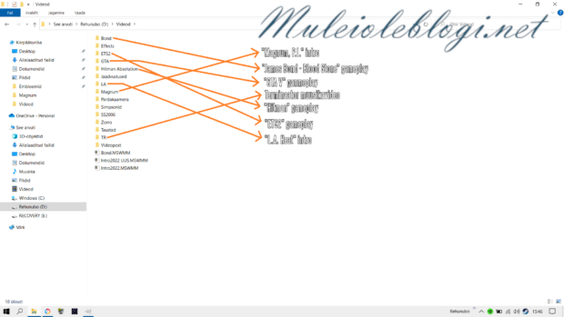10aasta taguse postituste seeriaga, kus tegin õppepostitused videode (introde) kokkumiksimisest (osa 1 ja osa 2), pole muutnud midagi – tänase päevani meeldib mulle kaustades valitsev kord: olen teinud D-kettale eraldi kausta “Videod”, mille sees erinevad töötlemised või tulevikus plaanis töötlusesse võtta sarjad vastava kausta nimega (pilt 3).