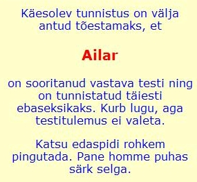 Täna on päev sujunud rahulikumalt, mis sest, et libistan üksi maasika siidrit, kirjutades samal ajal seda artiklit, aga mul on pisikene isu. Hommiku poole tegin Aarne blogis enda kohta seksikuse testi (ülimalt lihtne by the way), mis näib olevat tänapäeva (noorte) naistega samal arvamusel – Ailar ei ole üldse seksikas. Ta väga ebaseksikas inimene, keda naised ei vaata praegu ja ei hakka ka seda tulevikus tegema (pilt 1);