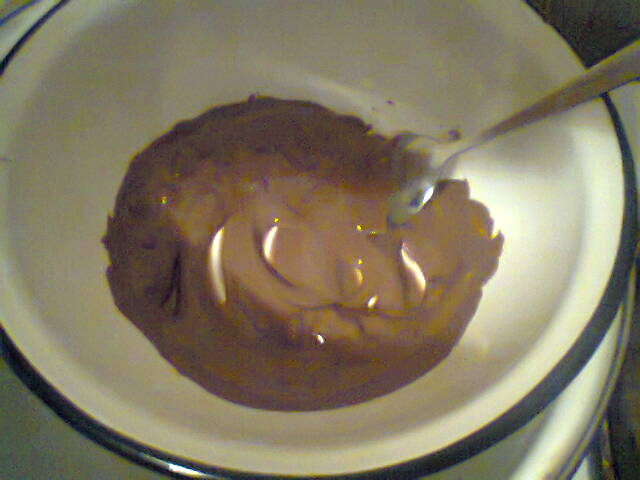 Kõik korras nagu mitte Norras, vaid Andorras, sulatas Armsake ~ 50 g šokolaadi (lihtsalt huvipärast, et näha, mis saab). Soks sulatatud sai see tainasse pandud ja taaskord segatud.