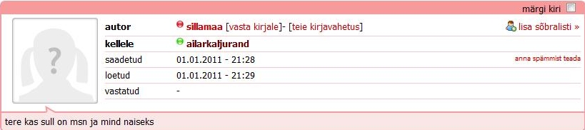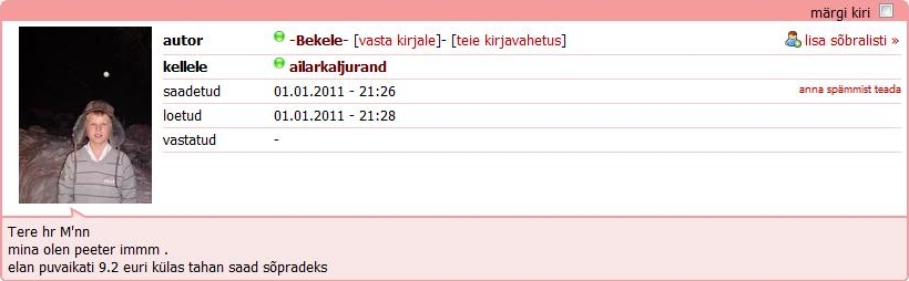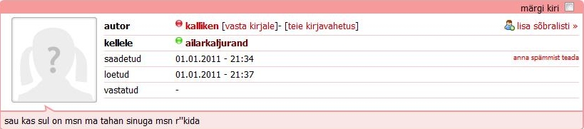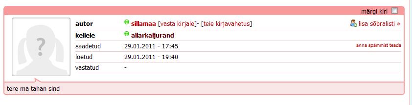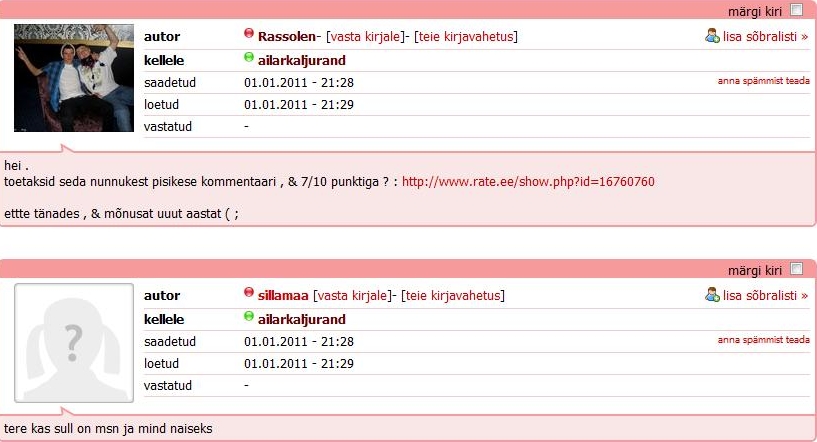 Sellised kirjad, lisaks paljudele, on ühed põhjused, miks oma Rate postkasti suletuna hoian, mille kaudu ainult sõbralisti liikmed kirjutada saavad.