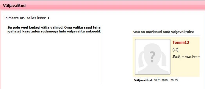 Mis on kõige huvitavam, just minu jaoks, eelkõige, on kasutaja Tommi12, kes tegi mu tõenäoliselt nalja pärast, kuigi kurat seda teab, mis ta tagamõtted tol ajal olid, eelmise aasta alguses väljavalituks, mind siiamaani väljavalitu alt kustutamata. On alles au ![]()