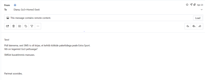 Mõtlesin endamisi, kas nood seal arvutitaga poole viie-viieni passivad kontorirotid tõesti ei suuda läbi hammustada SMS-s kirjutatut, kus oli selgelt välja toodud, et kõikidele pakettidele, v.a. Extra Sport. Ilmselgelt ei suudeta