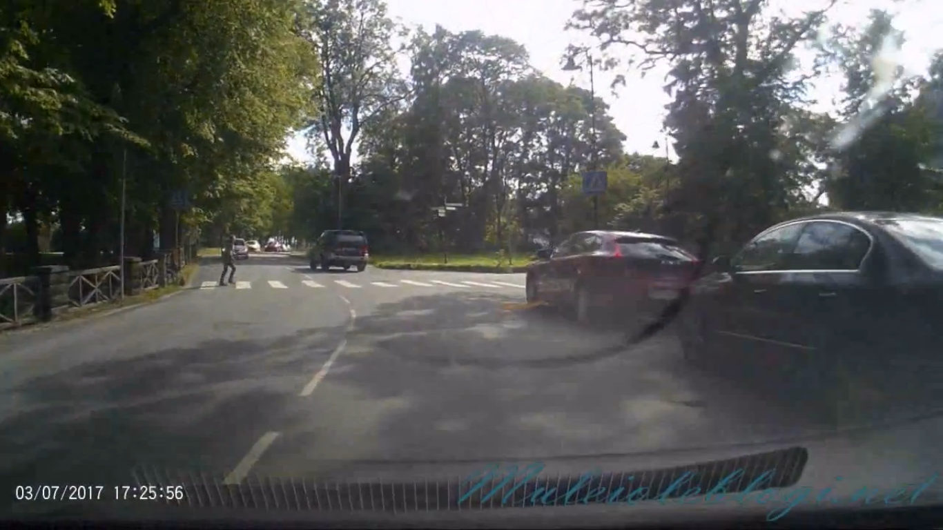 Järgmine lõik on pärit väga vihmasest päevast, mil otsustasin töölt kojub sõita mööda Pika tänava teed. See on taaskord üks sellistest näidetest, kus kaamera moonutab väga palju vahemaad auto ja teise liikleja vahel. Tegelikult oli auto ja teed ületada tahtnud noormehe vahe üsna pisike, mistõttu on sellised olukorrad äärmiselt ohtlikud.